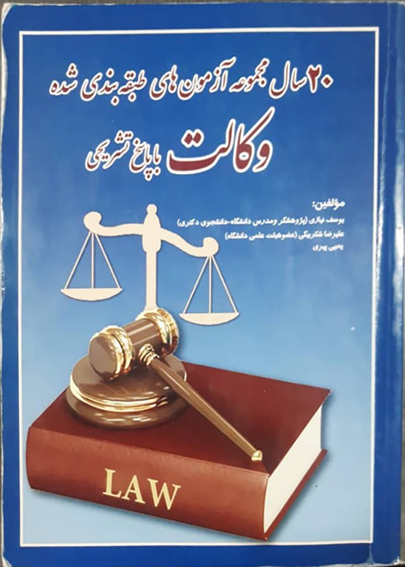 کتاب دست دوم 20 سال مجموعه آزمون های طبقه بندی شده وکالت با پاسخ تشریحی یوسف نیازی