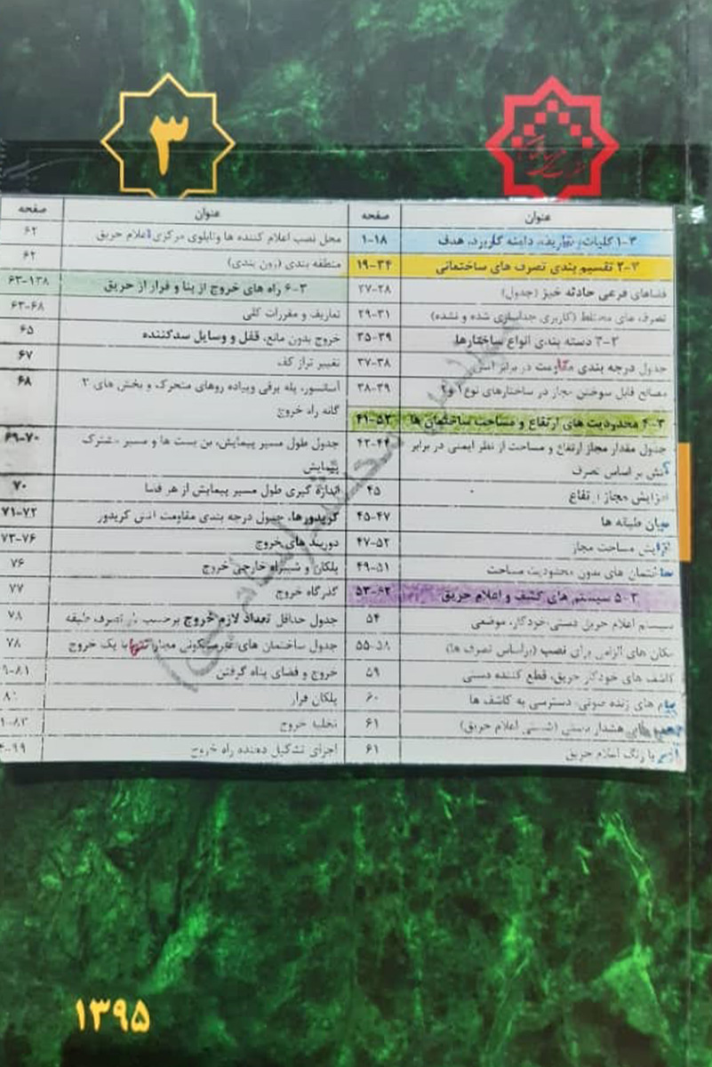 کتاب دست دوم مبحث سوم:1395مقررات ملی -حفاظت ساختمان ها در مقابل حریق -هایلایت دارد