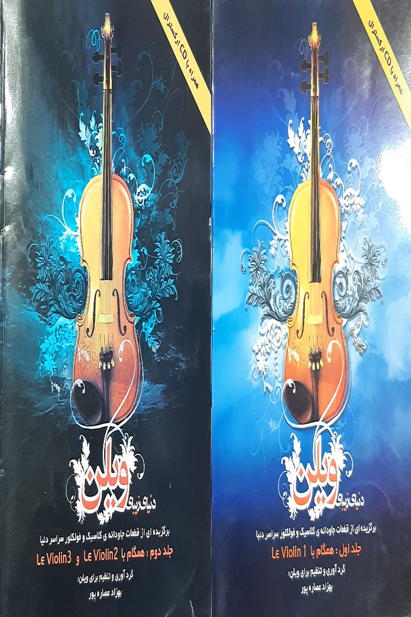 کتاب دست دوم دنیای زیبای ویلن(برگزیده از قطعات جاودانه ی کلاسیک و فولکلور سراسر دنیا) بهزاد عصاره پور جلد اول و جلد دوم - در حد نو